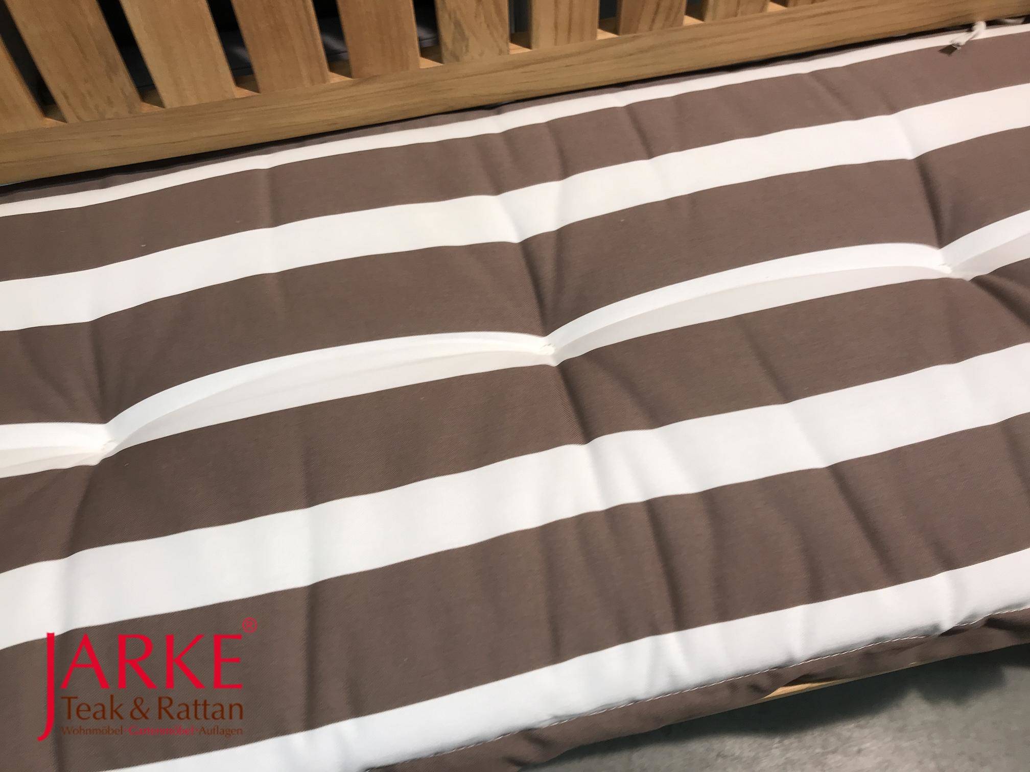 Einzelstücke! Top Preis, Bankauflage in 2 Längen im Streifen-Design. Klassischer Blockstreifen Taupe + Weiß. Volant und Steppung.