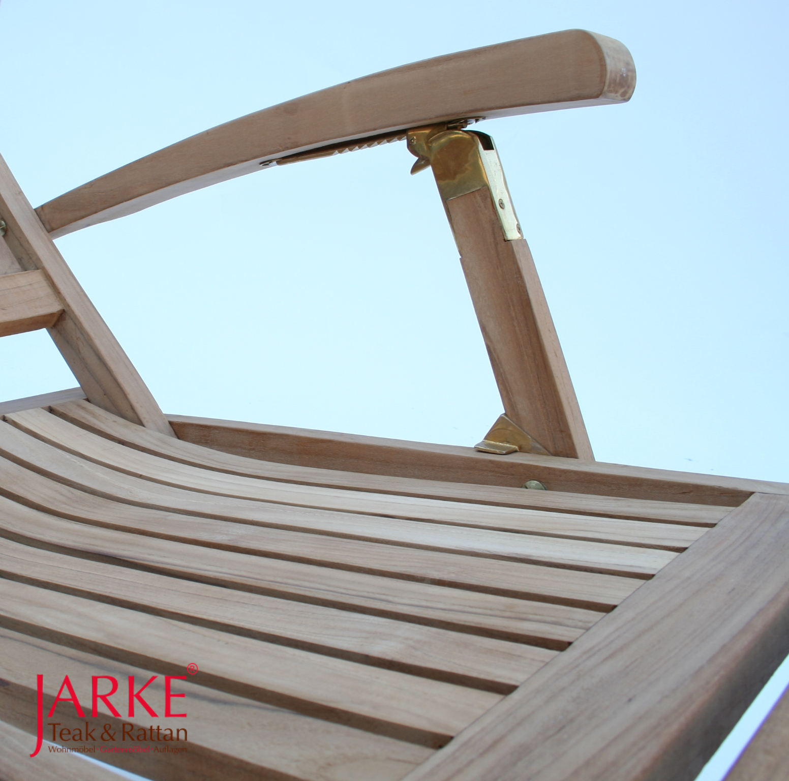 Unter den Armlehnen eines Deckchairs befindet sich Halterung ( Pistolengriff ) sowie eine Rasterschiene, damit die Rückenlehne verstellt werden kann