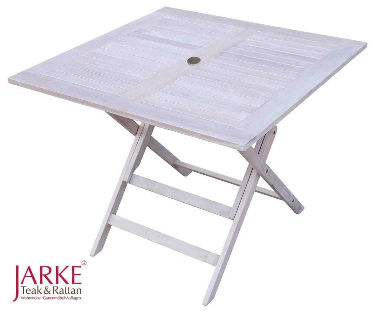 Mit seinen Maßen von 90 x 90 cm bietet er ausreichend Platz für bis zu 4 Personen und ist somit ideal für gemütliche Mahlzeiten oder gesellige Zusammenkünfte. Mit einer schnellen Bewegung lässt er sich mühelos aufstellen und bei Bedarf platzsparend zusammenklappen. Dadurch ist er besonders flexibel und leicht zu verstauen.