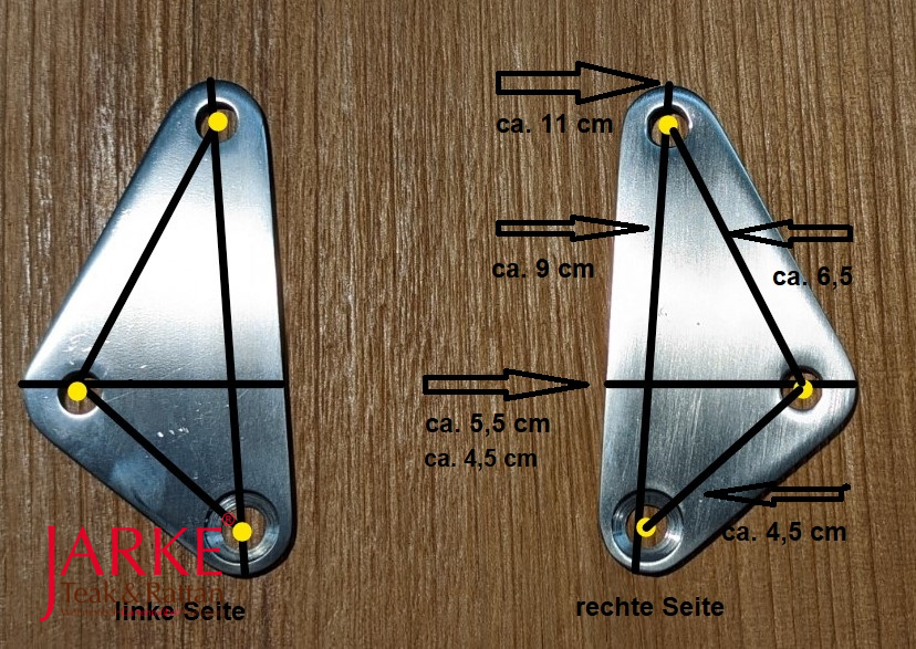 Wichtig: Bitte messen Sie vor Bestellung die Dimensionen des Dreiecksteils sowie die exakte Platzierung der Lochung & Abstände zueinander. (siehe unsere Zeichnung).