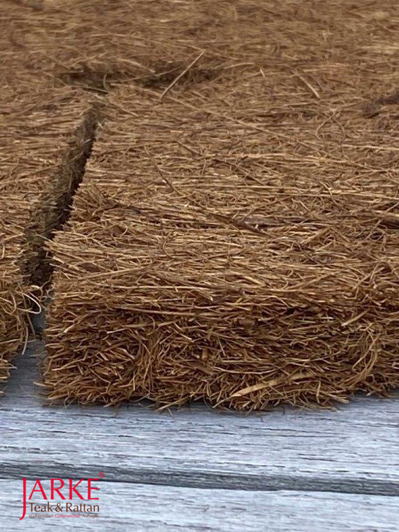 Die Kokosscheibe ist einseitig mit Naturlatex besprüht, damit die Fasern stets zusammenhalten.