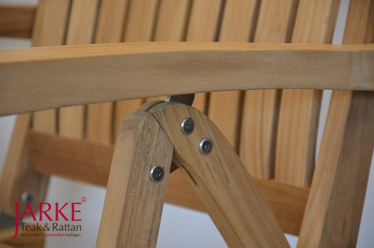 • Ergonomischer Teak Hochlehner mit EdelstahlscharnierenErgonomischer Teak Hochlehner mit Edelstahlscharnieren